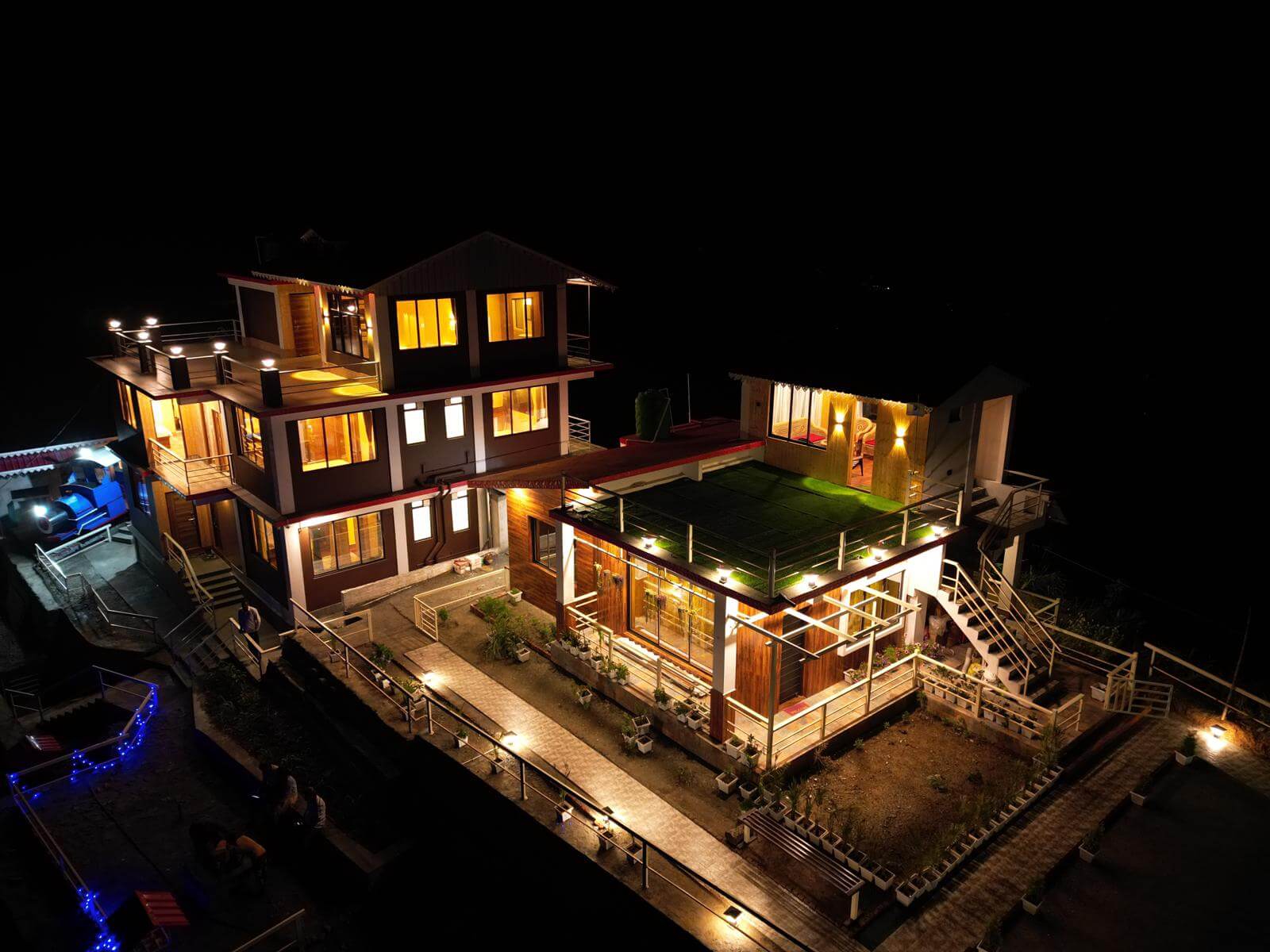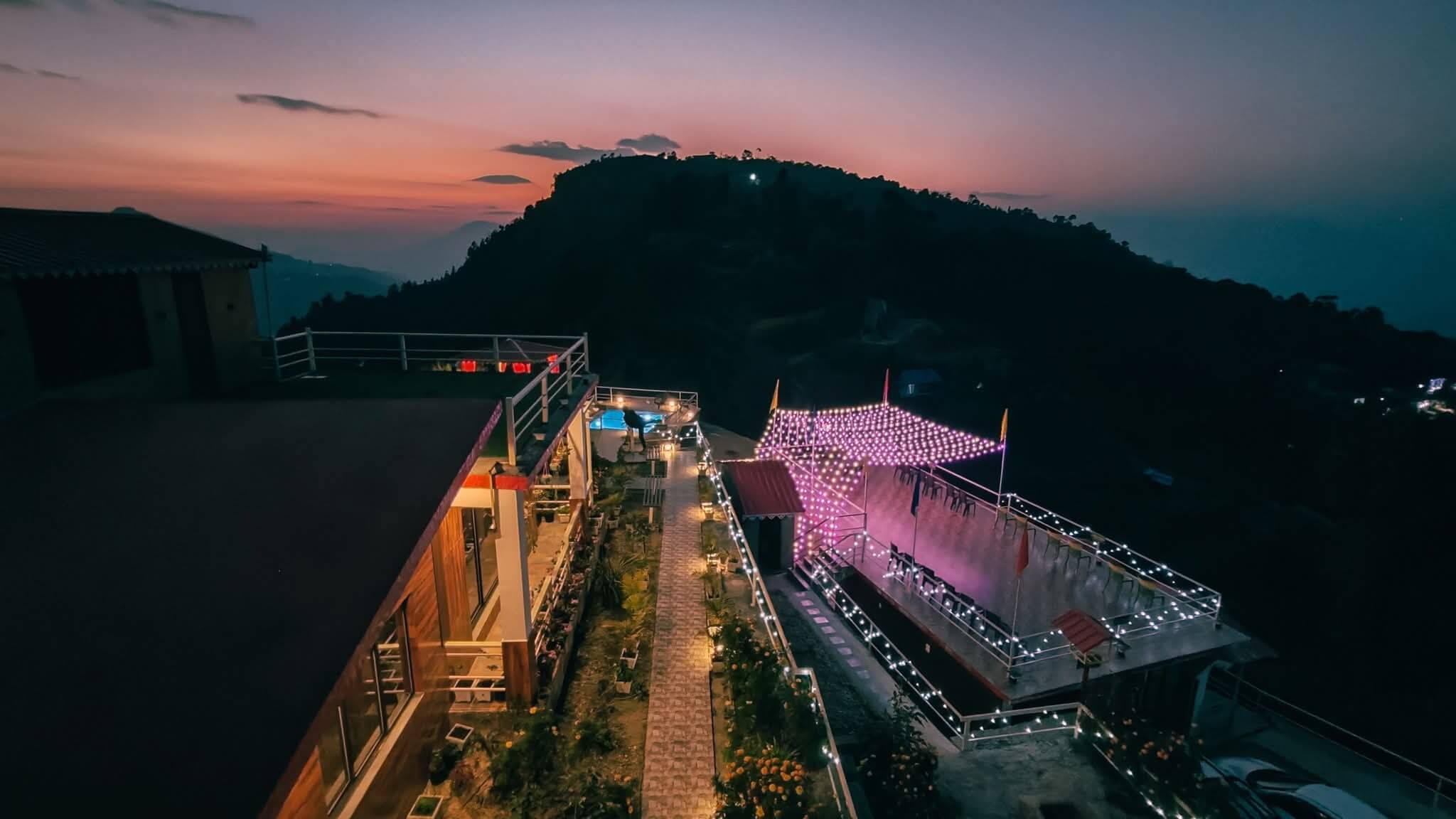 Planning an office picnic, a family reunion, or a college friends’ get-together? Make it memorable at Whispering Hills Retreat — your perfect group stay in offbeat Kalimpong. We host up to 45 guests on a scenic hilltop with mesmerizing sunrise and sunset views right from your bed. Our cottages and rooms (across three floors) are clean, spacious, and offer large windows with panoramic views. Heaters are available during winter for an extra charge. Enjoy the pool in summer and gather around the bonfire with barbeque in winter for unforgettable evenings.