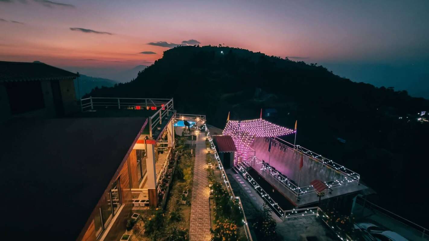 Discover Whispering Hills Retreat – Samthar, a serene group accommodation nestled in offbeat Kalimpong with stunning views of both the Teesta River and Mt. Kanchenjunga.